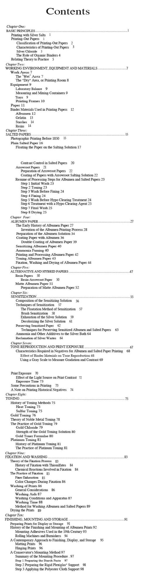 This is a book that covers both the historical and practical aspects for anyone who wants to learn and try printing using one of these two processes, albumen or salted paper. It is very detailed and well written. Below is the table of contents, which gives a clear idea of the content. It’s an up-to-date book and therefore very easy to find in both paper and .pdf format.