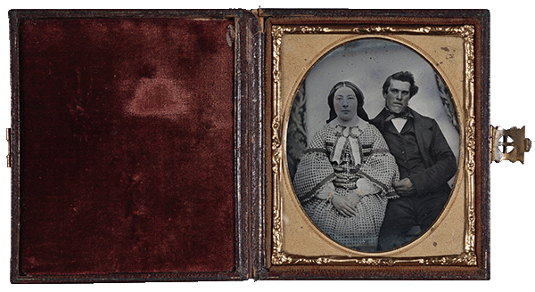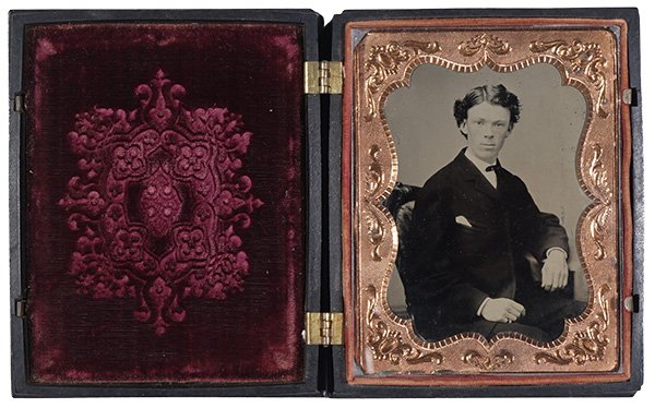 Because of these characteristics, ambrotypes were considered nobler modes within the photographic possibilities of the time and deserved the same richly ornamented cases that had previously only been used for daguerreotypes.