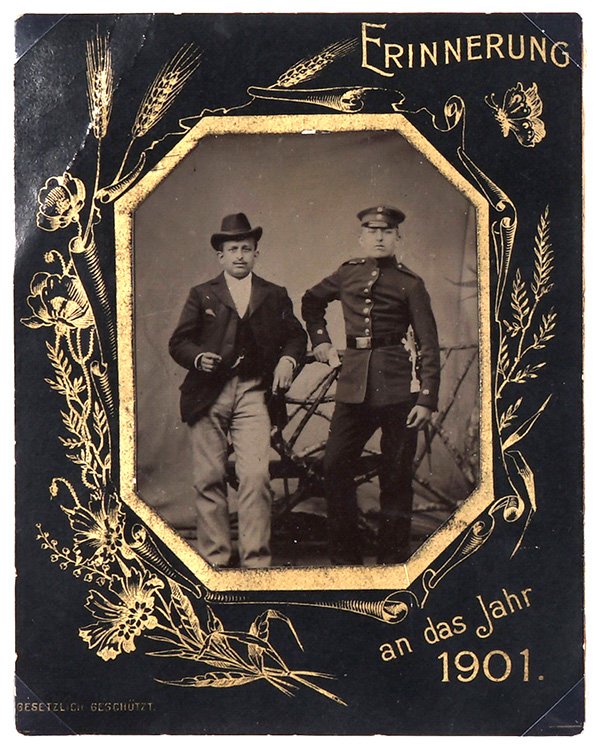 The direct positive process of the ambrotype would have enormous appeal for itinerant photographers who set up their tripods in streets, squares, popular festivals, or any other gathering of people and could sell a picture right away. However, it was was too expensive for that kind of business. In the next room, you will meet its poor cousin, the ferrotype, which uses the same process, but with a trick to achieve a very affordable price.