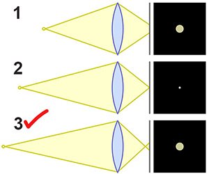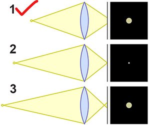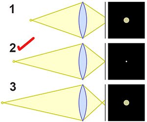 What is on the axis of the lens can be perfectly focused. In this condition, by performing a mathematical simulation, using the radii of curvature, distances, thicknesses and types of glass, an ideal geometric point on the object will theoretically correspond to an ideal geometric point on the image.