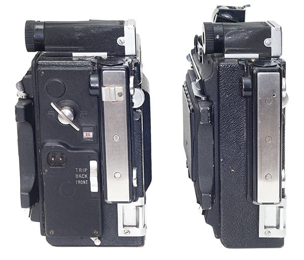 Without discontinuing the Speed Graphic, Graflex launched the Crown Graphic in 1947. Basically, the new model did away with the focal plane shutter and left only the leaf shutter that was already incorporated into the lens. The Crown is lighter and smaller than the Speed, as can be seen in the photo above. A good reason for this was that without the distance imposed between film and lens by the curtain shutter mechanism, the Crowns allow the use of wider-angle lenses up to 65m.
