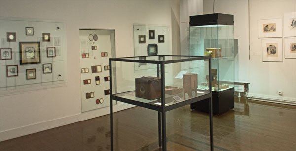 First piece is a large studio view camera. It demonstrates the image formation principle that can inspected on the ground glass. The screen on the wall, right of the picture, is also an image formed by lens facing the street on one of the museum sides.