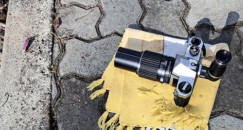 Despite such a simple camera, Pentax offered a large number of accessories for its K series. Many lenses with an excellent reputation under the Takumar brand. Flashes, bellows, filters, motor drive and everything a big brand could offer its most enthusiastic customers. Just as an illustration, above is a set-up using a right-angle viewfinder and a macro lens, 100mm f/4. With it the image below was captured.