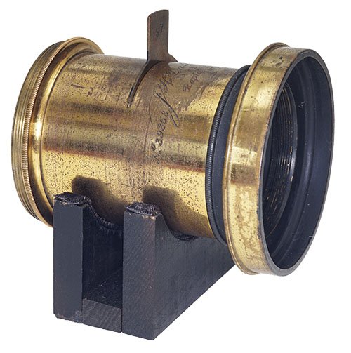 These two characteristics, average aperture and angle of view, combined with the fact that the lens did not produce linear distortions due to its symmetry, allowed cameras to be built with a fixed lens. With a fixed lens they could dispense with the ground glass and frame through an external viewfinder, with the focus made by estimation, i.e. they could be used without a tripod. This opened up the possibility of instant photos, especially when dry plates appeared, which were much more sensitive than collodion. It was a revolutionary lens. It was licensed and copied by all manufacturers and dominated the market for more sophisticated optics until the first anastigmatic lenses were developed in the 1890s.