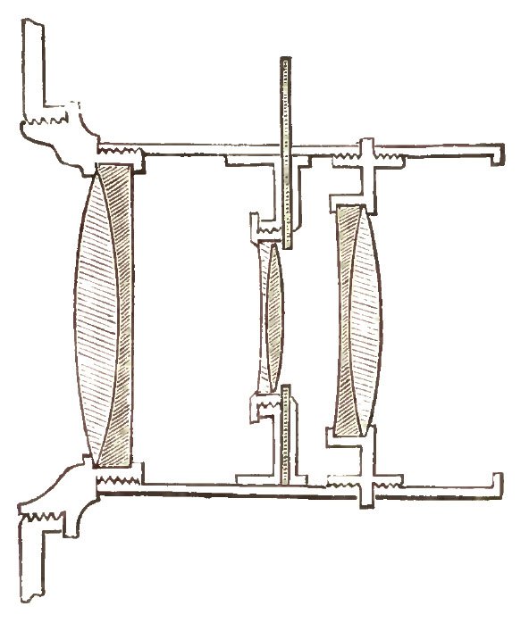 3. But it is free, along its axis, of spherical aberration, which is very valuable when producing animated scenes, portraits and outdoor groups, etc. In this respect, it is superior to the orthoscopic lens [this was the Petzval for landscapes], and especially to the common double lens [this is the Petzval for portraits], whose depth of focus at the same aperture is much smaller than that of the triplet.