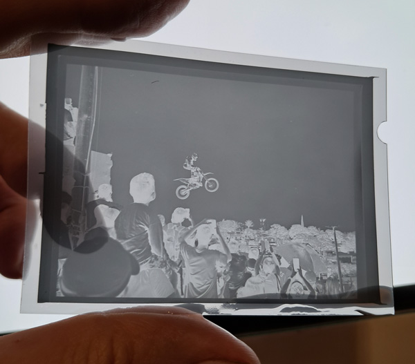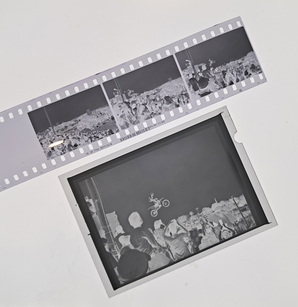 Fiz esta foto em uma competição de moto-cross aqui na minha cidade. Estava com uma Leica M3 e lente Summicron 50mm f/2, ambas da década de 1950. O filme era Double-X. A imagem acima é um scan do negativo inteiro. Embora meu objetivo seja fazer a impressão pelo método também analógico, eu sempre faço primeiro um scan para escolher as fotos e planejar o que e como que irei imprimir.