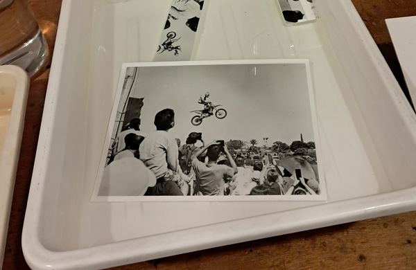 A impressão final foi feita em 15 x 20 cm e aproveitei para cortar um pouco mais da cena e dar mais destaque ao menino e a moto. O negativo estava bem equilibrado e não deu trabalho nenhum para acertar a exposição e o contraste que foi feito com um filtro de grau 2.
