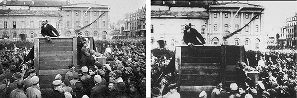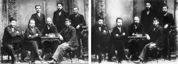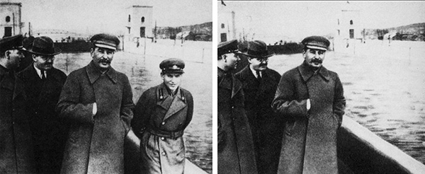 Um caso anedótico de alterações em fotografias, talvez o mais famoso e muito citado, é o que se observou no período de Josef Stalin na União Soviética. Sabe-se que ele mandou matar dúzias de pessoas que lhe foram muito próximas, além de centenas de milhares das mais distantes. “Companheiros” que caiam na desconfiança do líder eram assassinados. Não satisfeito em apagá-los da vida real, as fotos oficiais do regime eram também retocadas dando sumiço nas pessoas. Os exemplos abaixo mostram casos que vão do simples apagar contra um fundo mais ou menos neutro até outros em que o cenário precisou ser recomposto para preencher o vazio. A notar que há uma perda de detalhes e cinzas médios nas novas versões. Compare, por exemplo, o palanque onde está Lenin na primeira foto, no antes e depois, ou os casacos escuros nas fotos seguintes. Estas imagens vieram do site: Russia Beyond, caso tenha curiosidade histórica além da fotográfica, lá é possível se ter mais detalhes de quem eram os apagados.