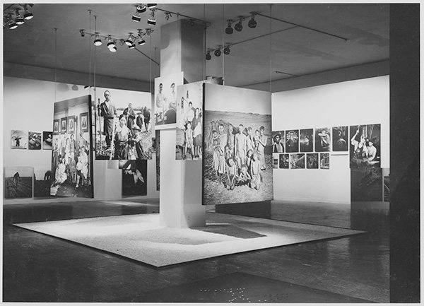 Muitos fotógrafos famosos foram expostos ao lado de desconhecidos e também os tamanhos das impressões variava bastante. Em todos os sentidos a idea de base foi não hierarquizar, não diferenciar e colocar toda ênfase na universalidade do elemento humano, como era a premissa da fotografia humanista. A foto acima é do site do MoMA. Nele é possível se explorar uma quantidade enorme de fotos da exposição. Siga o link: The Family of Man.