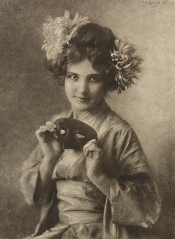 The photo above is from 1909 and was taken by the Séeberger brothers. They were three, Jules (1872-1932), Louis (1874-1946) and Henri (1876-1956) Séeberger, owners of an important photographic studio in Paris. Like the genre paintings, this photo has a name that is not the model’s name, she rather plays a “character”, an artist’s creation, called: Jeune femme au masque, “young girl with mask”. It falls into the category of pictorialists who were fond of exotic, mythological and religious themes. They liked retouching and interventions that brought photography very close to a neighbouring artistic realm of painting. It was most likely taken with an Eidoscope, not only for its flou artistique look and date, but also because it was the Séeberger brothers who gave the lens their famous aphorism: L’Eidoscope ne photographie pas, il dessine, “Eidoscope does not photograph, it draws “.