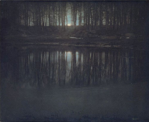 A beautiful landscape of Edward Steichen (1879–1973) in his pictorialist phase: The Pond Moonlight, Mamaroneck, New York – 1904. Note that Steichen is among the photographers cited in the Hermagis catalog as an Eidoscope user. We cannot say with certainty that this image was made with this lens, especially since the Eidoscope was launched in 1903 and this photo is from 1904.