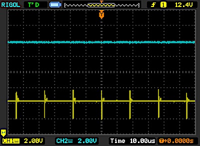 Fortunately, for an LED the oscillation frequency of these pins does not affect the performance of ascents and descents (like an incandescent lamp that needs time to warm up and takes time to cool down because the light is a by-product of temperature) and we can count that 128 corresponds well to 50% of the power. This explains the scale linearity that appears in the green that starts with 28 and adds up to 28 at each step.