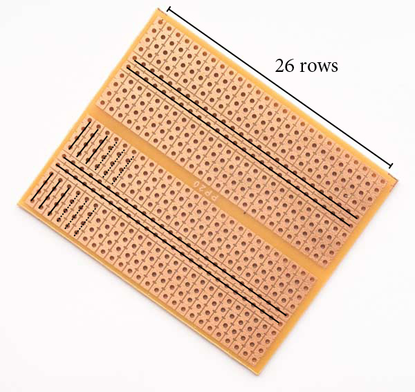 The board is now ready to receive the components. The LEDs are placed on the face that has the tracks and the other components on the opposite side. The power supply chosen is 12 V and 10 A, as this is a very easy source to find. At this back to table of contentsge LEDs are arranged in series circuits of 3 LEDs. That is why in the board design, above, we clearly see that there are 6 identical groups of 3 LEDs each. The writings are reversed because we are seeing it from the opposite side of the tracks.