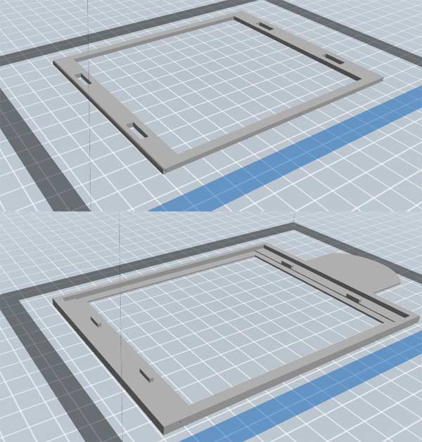 In the aforementioned file apenasimagens_led_rgb_V1.zip you will find .stl files that are negative carriers designs, for 4×5 ” ready for printing. Before printing, check if the measurements are correct because your box may show some variation in relation to this one I did it even though you used the same measurements. If necessary, ask the 3D printer to make the adjustments. Once you adjusted it, use this 4×5 as a basis to draw for other formats.