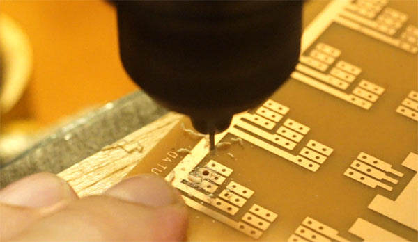 • Finally, the plate should be drilled in the places marked with a 0.8 mm drill. Such drills are easily found in stores that sell plates for PCB, iron perchloride, soldering and electronic components. It can also be found online at the same suppliers for electronics.