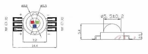 5 – Luminous flux: R: 30-40LM G: 80-90LM B: 30-40LM