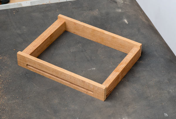 I tried to do the project using the least specialized tools. But this groove is much better if done with a router, as shown above. I made a test with a scrap piece of wood to see if the fit would be good and, once the height was confirmed, the final piece was passed through the router. The result is the photo below.