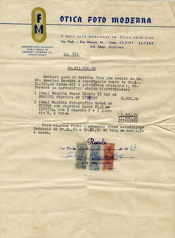 This particular camera was from a friend’s grandfather and it came with the purchase receipt here in Brazil, in Sao Paulo, in 1957. That was two years after its release. It certainly caused a sensation.
