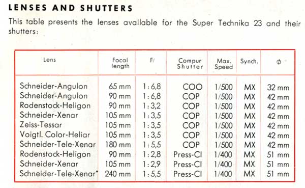 Mine, the one featured in this article, is a  Super Technika N. Below, the full list of lenses that were offered for N model.