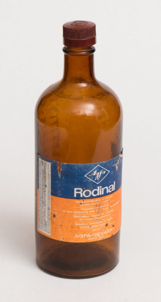 That makes Parodinal a direct descendent of Rodinal, a very famous developer in the history of photography. Launched in 1891 by Agfa using para-aminophenol as a developing agent. Rodinal was in production by Agfa itself until 2008 and then the name started to be used by other companies that acquired the right to the brand. This is a vintage packaging from Rodinal. As it was, if not the first, certainly the most famous developer to use para-aminophenol, he ended up giving the name to Parodinal.