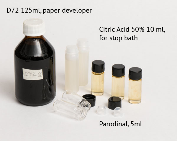 The problem for today’s photographer is that para-aminophenol is very expensive and difficult to buy. But someone has found that paracetamol, or acetaminophen (different names for the same substance) when in the presence of a very strong alkali, combine to form para-aminophenol. This made possible the formulation of Parodinal. Very conveniently, paracetamol is just the pain killer found in any pharmacy among options of famous brands or generics.