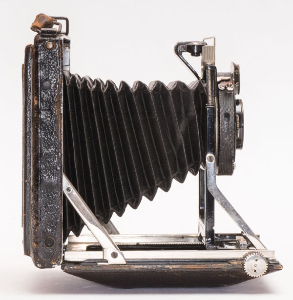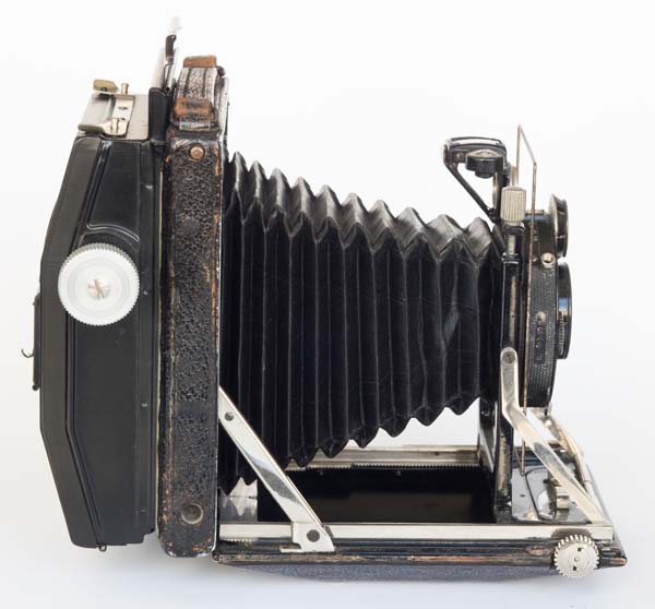 As for movements, it only has a front raise, through a threaded shaft that is very firm and practical. I think this is a huge advantage that was built into this camera due to its early release in 1920. It competed with other cameras in the same style but large format, which usually offered some lens board movement. The next generation, like the Ikontas and Super Ikontas, none of them offer anything similar because despite being folding in the medium format, they were already in the mindset of handheld photography, without tripod, without ground glass and therefore without lens movements.