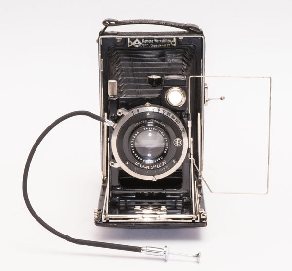 Outside the circle of collectors and scholars of the history of photography, I believe that the name Kamera-Werkstätten is not very well known. However, the company played a very innovative role and a very troubled history. It was founded in 1919 by Paul Guthe and Benno Thorsch in Dresden, Germany. First launch was the Patent-Etui in 1920. Important releases followed. A TLR called Pilot in 1931, a medium format SLR called Pilot 6 in 1935, and the Praktiflex, an SLR for 35mm film, in 1939. Praktiflex was KW’s most continuing creation. It was the first 35mm SLR to compete with pioneer Kine Exakta and would later be renamed Praktica shortly after World War II. Praktica was a huge success and sold for many years.