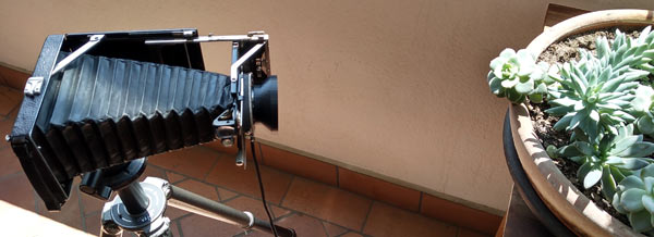 I also really enjoy taking pictures with the camera simply on the ground and using the front raise to the maximum. It gives a perspective that we don’t normally have on a daily basis. This is the case in the photo above. It was made with Trioplan and Ilford FP4 film. Printing on FOMA 111 paper.