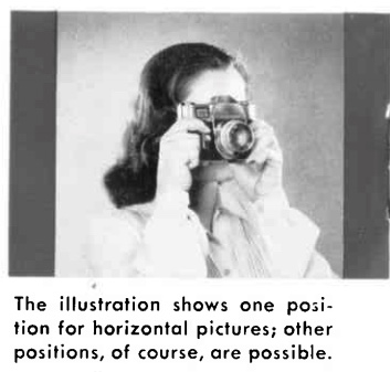 When the button is at the top, we can press the camera between the middle of our index and the base of our thumb on the opposite side. By pressing the prism or visor against the forehead, we have a very stable situation. We just move the tip of the indicator to trigger the shutter while focusing with the left hand thumb and index finger. While with the trigger in front of the camera, it is more difficult to obtain the same level of stability