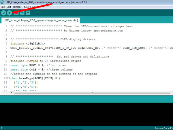 The program that controls the entire operation of the Solar UV Exposimeter is called in the Arduinolandia language sketch. I will try in this tutorial to make it so that someone can blindly load the program on their Pro-Mini without knowing anything about programming. If you know something, but not Arduino, I can warn you that the code in which the sketch is written is like C ++. In the file apenasimagens_solar_UV_exposure_meter_en.zip I included “useful links” and there you will find a series of links to go deeper into Arduino projects. I think it is very worthwhile for analog photographers. My lab is full of timers, sensors, heaters, coolers, dryers and other gadgets made with Arduino.