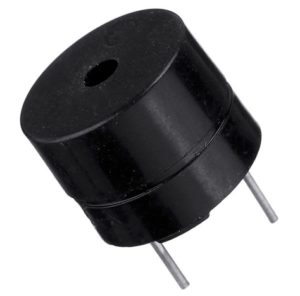Buy a 5V buzzer that can be plugged directly into the board. There are several sizes but this one, which has approximately 7.5 mm between the pins, is one that occupies exactly 3 spaces on a standard plate. Also pay attention to polarity. The positive goes on the Arduino pin and the other on the negative of the circuit. Unless specifically stated otherwise, the largest pin is the +. If you reverse the polarity it will not work.