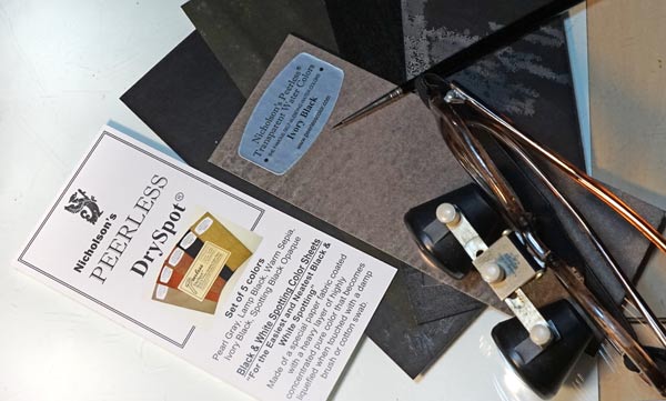 For many years I used china ink, then bought a Peerless Dryspot® sheet set. In addition to being far superior to the china ink, it seems that at my retouching pace will last longer than me. So, with a 3 zeros da Vinci brush, made in Germany, I decided to reduce the intensity and shape of the catchlights.