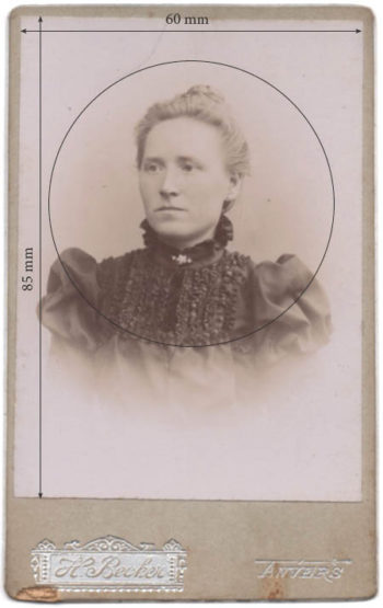 The photo on the carte de visite above measures 60 x 85 mm. I have no indication that it was produced with a Petzval or even its date. But it serves to give us an idea of the proportions of what was considered a portrait, for it is certainly within a very common aesthetic and format standard at the beginning of photography. The marked circle is 50 mm in diameter and matches the sharpness area of a 150 mm lens that would be close to its 1/8 plate size. The entire plate was 18 x 24 cm and sometimes quoted as 16 x 22 cm (as in Lerebours et Secretan catalogues).