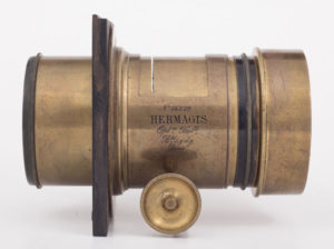 [mks_one_half]Hermagis, a French manufacturer of lenses and cameras. This is a lens marked as Portrait No. 5. It is a far more recent production, 1909, and attests to the great success of the Petzval design that was already almost 70 years old. The front element is 80 mm in diameter and the focal length is 300mm with f / 3,9. More information: Objectif pour portrait Nº5 – Petzval design – Fleury-Hermagis. [/ mks_one_half]