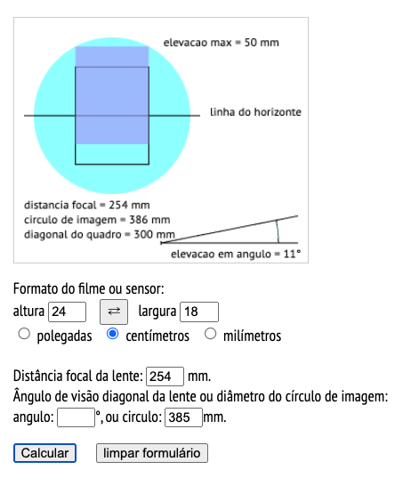 Isso coloca a linha do horizonte mais ou menos a 1/3 do quadro e permite acertar a perspectiva em muitas situações. Esta calculadora é online e está disponível aqui: Elevação da lente e a Linha do horizonte